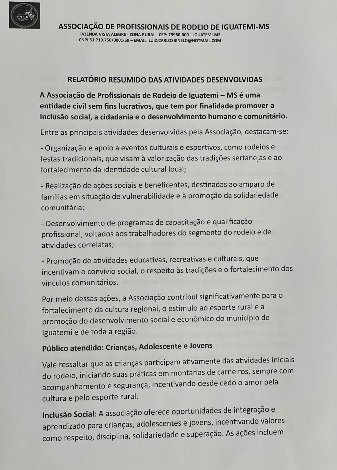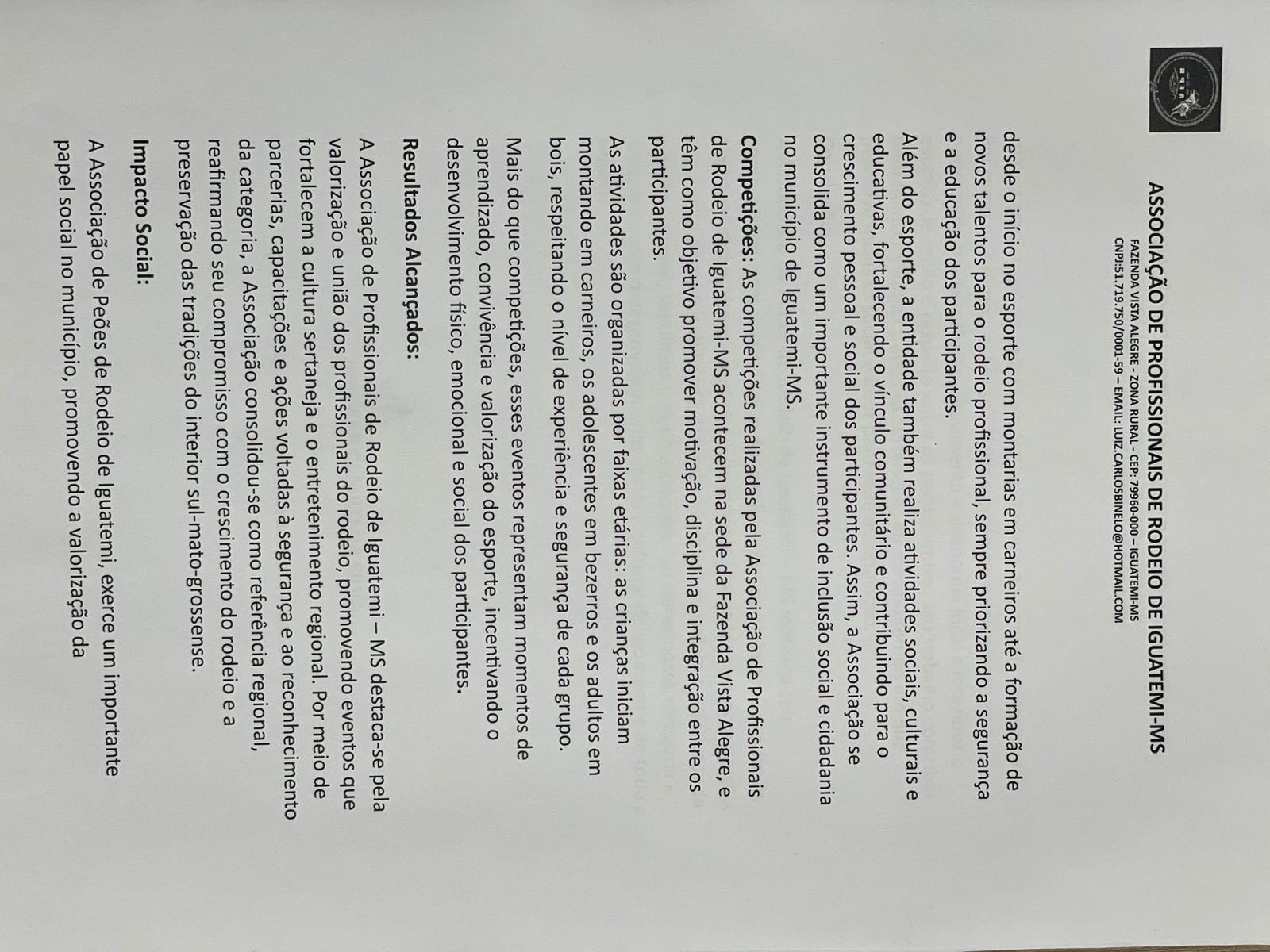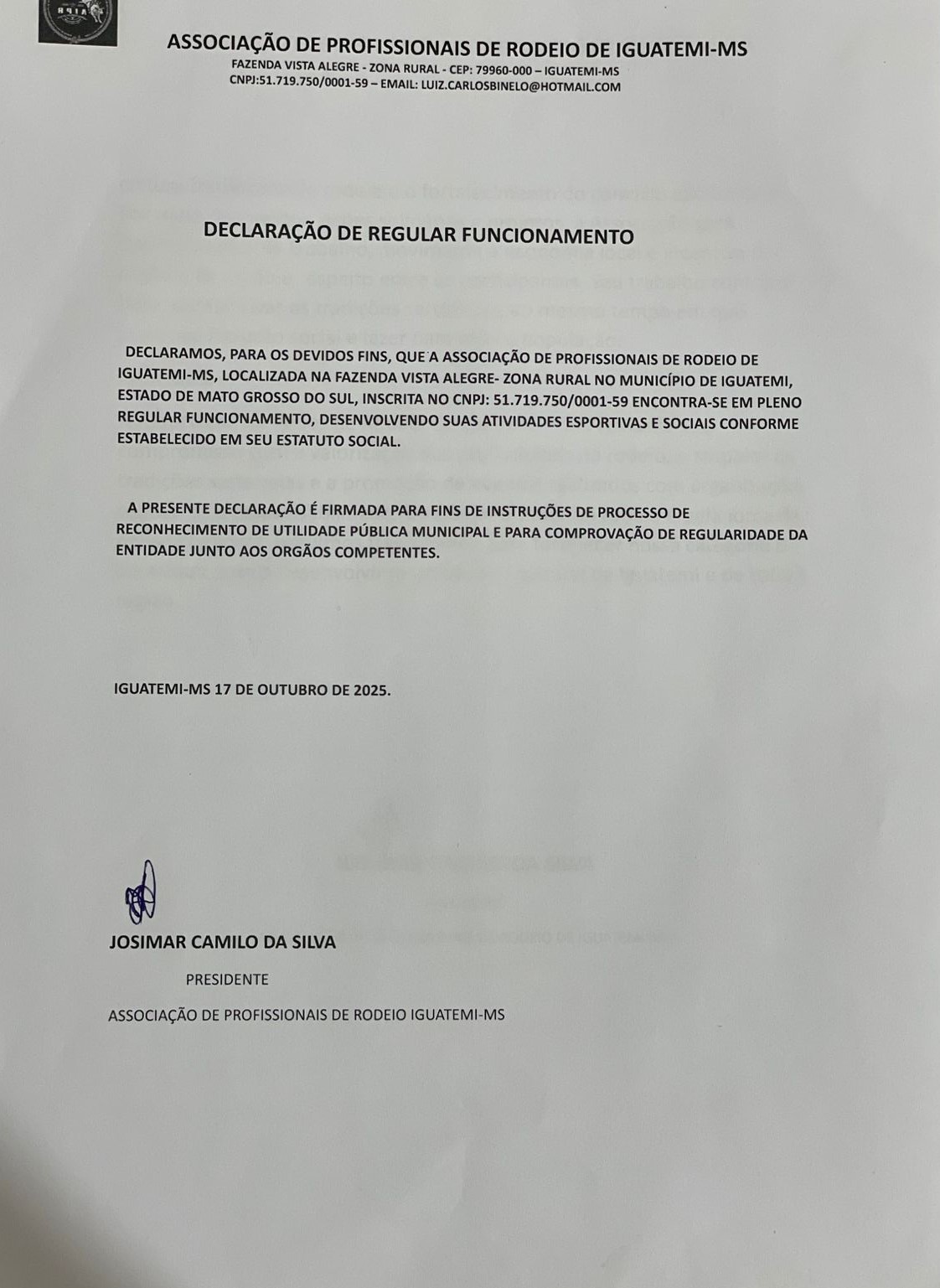 O vereador AGNALDO DOS SANTOS SOUZA, abaixo assinado, no uso de suas atribuições legais e nos termos regimentais requer da Mesa Diretora, após ouvido o colendo Plenário, que seja encaminhado as Comissões solicitação para: ANALISAR E DAR PARECER SOBRE O PROJETO DE LEI DE INICIATIVA DO LEGISLATIVO PARA CONCESSÃO DO TÍTULO DE UTILIDADE PÚBLICA MUNICIPAL A ASSOCIAÇÃO DE PROFISSIONAIS DE RODEIO IGUATEMI-MS